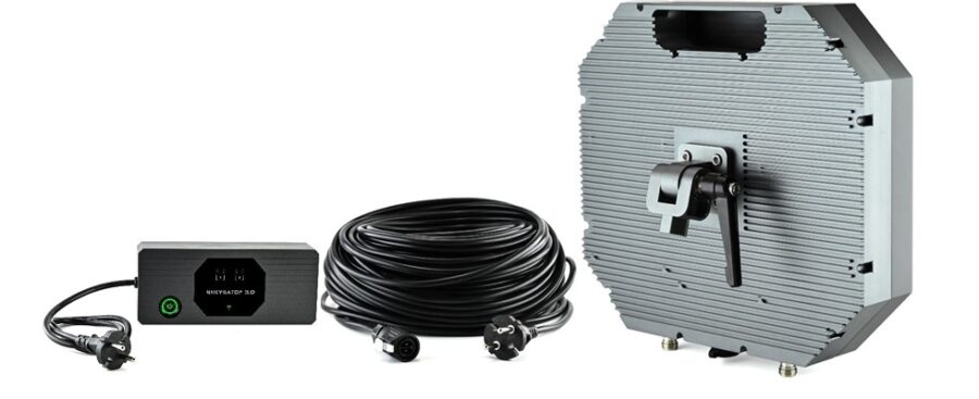 №1. Антенный блок Инкубатор 3.0, кронштейны на штатив и трубу, диагностический блок индикации режимов работы каждого из двух усилителей с кнопкой питания, 50 метров кабеля 220В и портативная аккумуляторная электростанция 299 ватт-час для бесперебойного и защищенного от помех генераторов